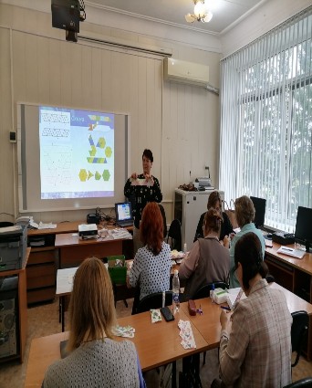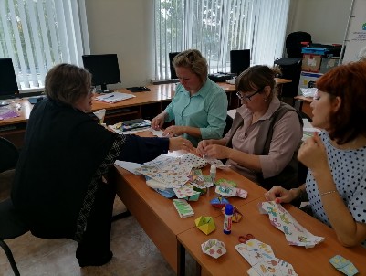Воспитатель МКОУ Бергульской ОШ Григорьева Е.Ф провела мастер-класс по теме: «Создание игрушки «Флексагон» как универсального пособия по формированию предпосылок функциональной грамотности». Педагоги района не только познакомились с различными видами данного пособия, но и научились его изготавливать.