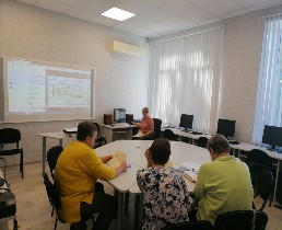 Макарова О.В., руководитель методического объединения учителей географии, провела практикум по использованию портала РЭШ и заданий ФИПИ для оценки сформированности читательской грамотности обучающихся 5-9 классов. Педагоги разделились на две группы – «обучающиеся 5 класса» и «учителя», выполняли задания, обсуждая типы задач, их сложность и возможные ошибки обучающиеся.