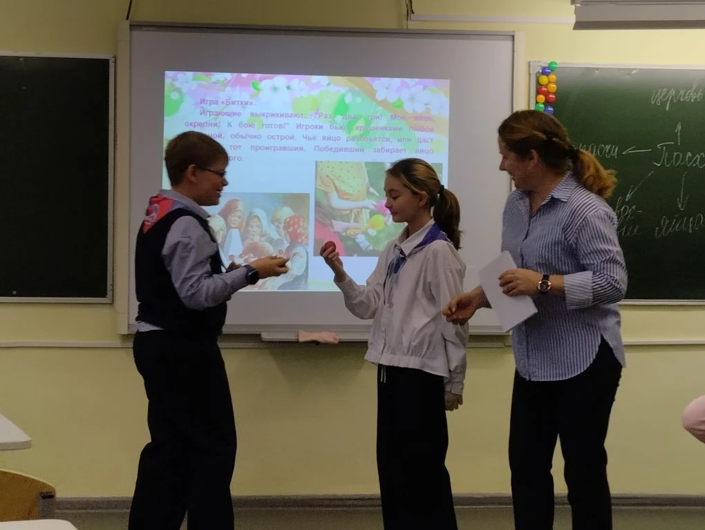 Ликаровская Юлия Владимировна, учитель истории и обществознания Северной средней школы, провела открытый урок-исследование по теме «Пасха» в 4 классе. На уроке использовались разные формы организации познавательной деятельности: фронтальная, индивидуальная, групповая. Педагог применила методы обучения: объяснительно-иллюстративный, частично-поисковый, метод коллективного взаимодействия. Урок содержит много визуализированных опор, выполнение упражнений происходит с помощью мультимедийной презентации. На разных этапах урока использовались различные методы работы с материалом. Все задания были связаны друг с другом и вытекали последовательно. Работа направлена на реализацию принципов персонализации и наглядности. Все поставленные задачи были решены. Очень важно в этом возрасте прививать у детей любовь к своей стране и к своим народным обычаям и традициям, чтобы воспитать поколение людей, любящих свою Родину. На уроке использовались различные виды работы – групповая, индивидуальная. Для развития культурного кругозора, обучающимся были предложены обучающий видеофильм, рассказывающий о колокольном звоне, стихи, посвященные Пасхе. Красочная презентация способствовала лучшему усвоению темы урока и делала его еще более наглядным. Для того, чтобы ученики не уставали, применялись разнообразные приемы и смена видов деятельности, таким образом мы можем проследить на уроке принцип здоровьесберегающих технологий: